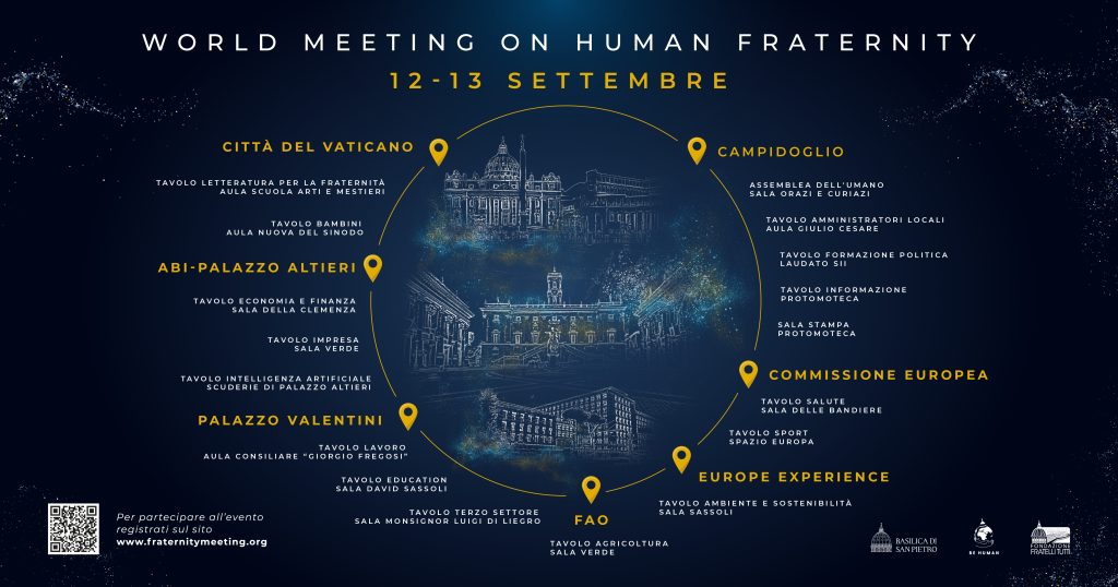 In ABI il meeting sulla fraternità. Nell’ambito dei 15 Tavoli tematici previsti dall’evento World Meeting on Human Fraternity 2025 in luoghi simbolici della città di Roma, l’Associazione Bancaria Italiana ospita il Tavolo tematico “Economia e Finanza – Per un’economia e una finanza umane” a cui interviene il Direttore generale, Marco Elio Rottigni, il Tavolo “Imprese” e il Tavolo “Intelligenza Artificiale”.