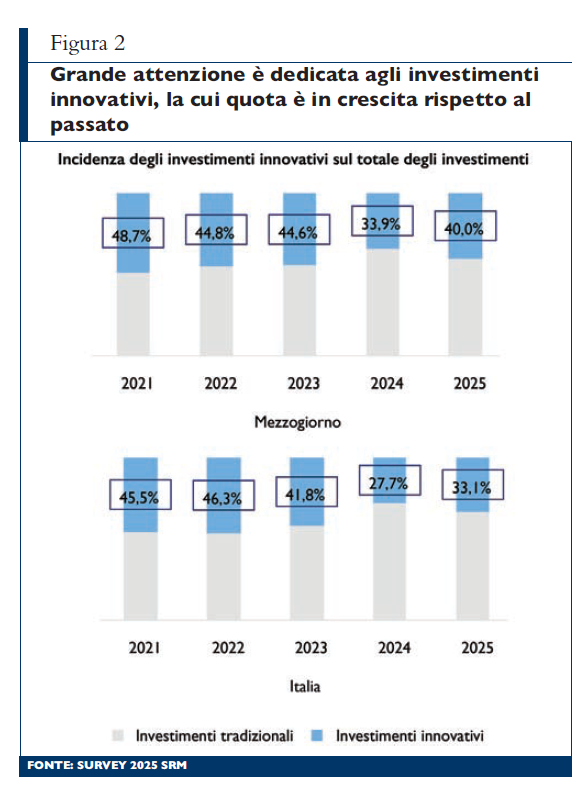 L’attività d’impresa, per sua stessa natura, è un processo dinamico e in continua trasformazione, destinato a evolversi sia in funzione della crescita interna delle aziende sia per rispondere in modo efficace ai profondi mutamenti del contesto economico, tecnologico e competitivo di riferimento. In questo scenario, la survey di Srm si pone l’obiettivo di monitorare l’evoluzione in atto, analizzando le principali tendenze e cambiamenti in corso, così da seguire da vicino le dinamiche che caratterizzano il sistema industriale del Mezzogiorno per meglio comprenderne punti di forza, criticità e prospettive future. Il quadro che emerge evidenzia la presenza di imprese dinamiche e resilienti, capaci di investire in modo significativo, attente ai processi di innovazione e all’adozione di nuove tecnologie, orientate ai mercati esteri e integrate all’interno delle supply chain internazionali. Si tratta di realtà imprenditoriali che dimostrano una buona capacità di competere su scala globale, contribuendo allo sviluppo economico e produttivo dei territori in cui operano. Il Mezzogiorno, in questo senso, esprime un’importante potenzialità industriale su cui è necessario continuare a puntare. Valorizzare tale patrimonio produttivo significa adottare politiche e strategie mirate, capaci di rafforzare la competitività delle imprese e di accompagnarle lungo un percorso di crescita duratura, equilibrata e sostenibile, in grado di generare valore nel lungo periodo e favorire uno sviluppo strutturale dell’intero sistema economico e finanziario territoriale.