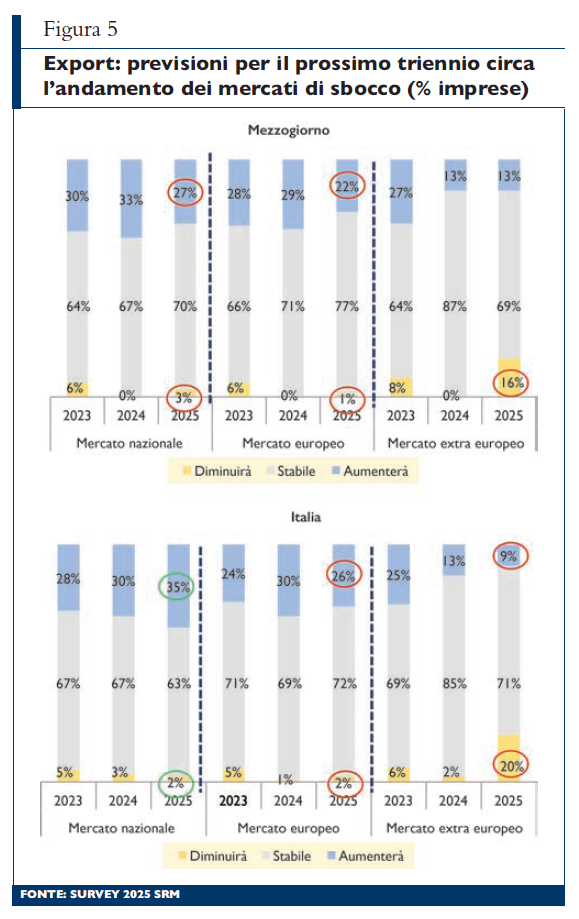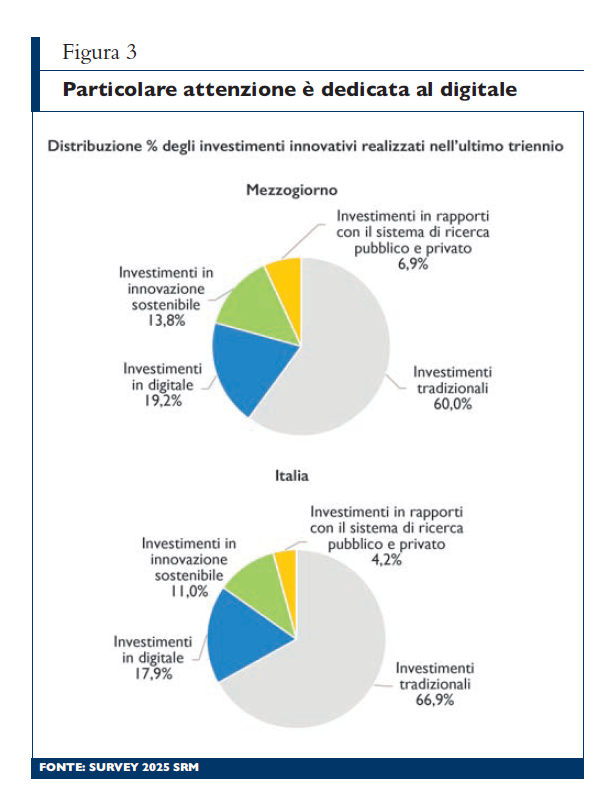 Per comprendere le dinamiche che caratterizzano l’attività d’impresa, Srm conduce dal 2021 una survey specificamente dedicata alle imprese manifatturiere, con l’obiettivo di monitorare le principali tendenze evolutive del comparto, anche alla luce di un contesto economico e geopolitico in costante mutamento. Guardando al Mezzogiorno, l’indagine evidenzia una realtà imprenditoriale che dimostra una crescente capacità di competere su scala globale, con la presenza di imprese dinamiche e resilienti, capaci di investire in modo significativo, attente ai processi di innovazione e all’adozione di nuove tecnologie, orientate ai mercati esteri e integrate all’interno delle supply chain internazionali. La loro presenza è fondamentale per lo sviluppo economico e produttivo del territorio.